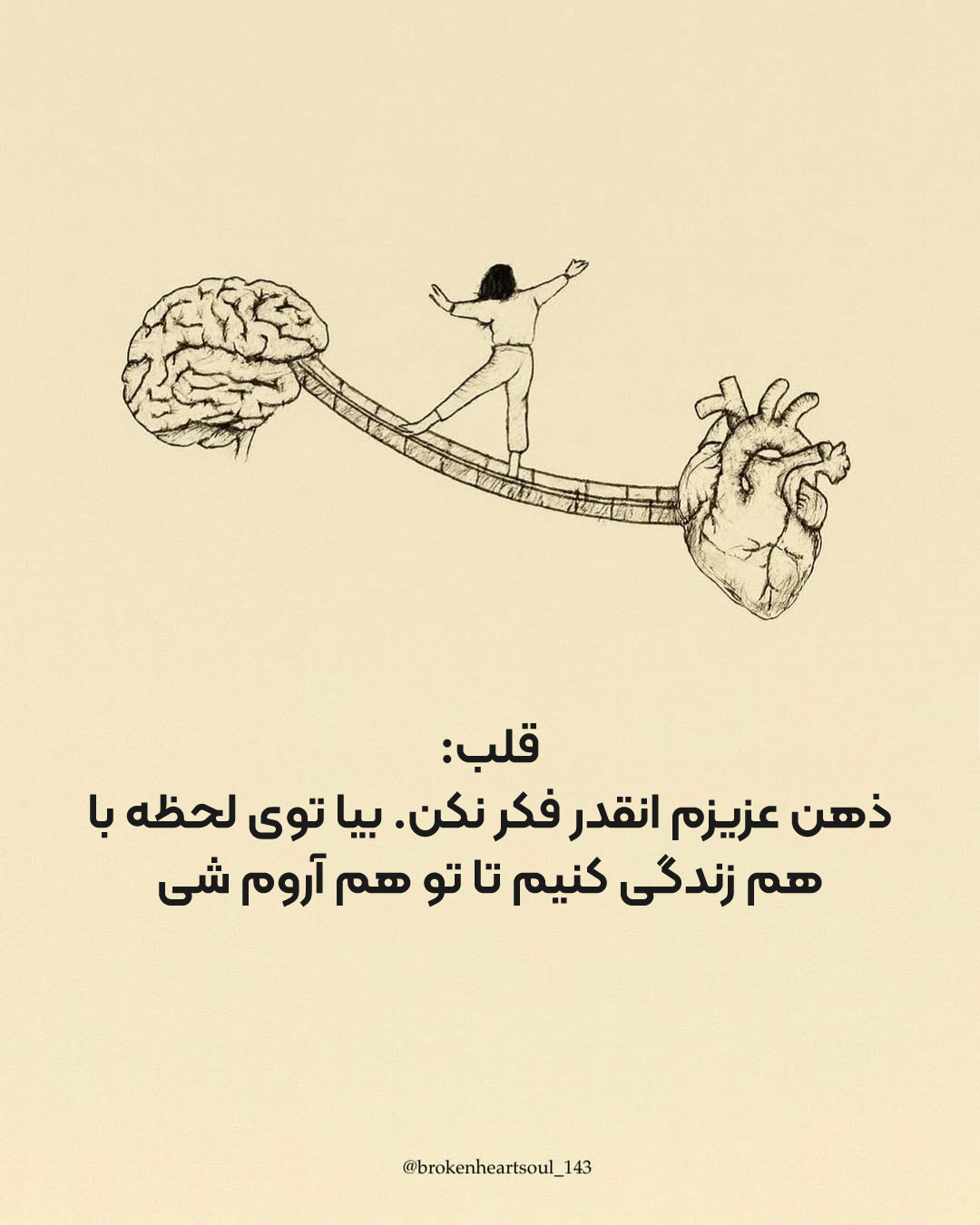ذهن عزیزم انقدر فکر نکن، بیا توی لحظه با هم زندگی کنیم تا تو هم آروم شی